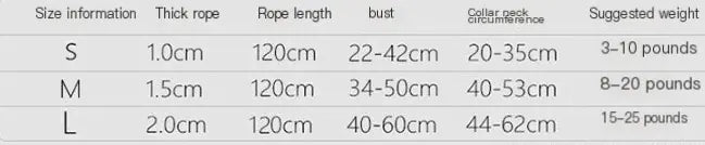 Crafted to accommodate various sizes, our leash set is suitable for dogs weighing between 3 to 15 catties. Whether you have a small pup or a medium-sized companion, we have options tailored to meet your needs.